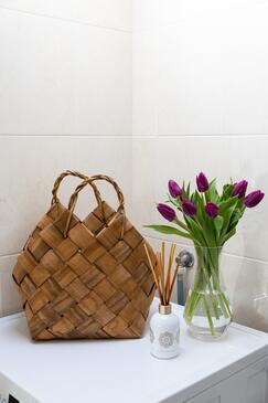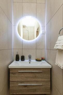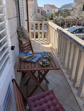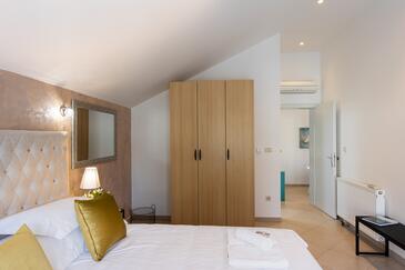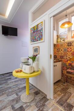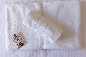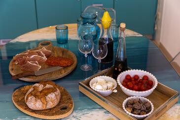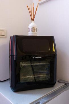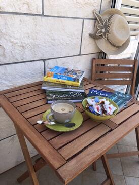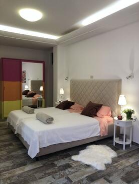 Ferienwohnung bietet Platz für 4 Gäste. Die Betten sind in Schlafzimmern, die es 2 gibt, innerhalb einer Gesamtfläche von 56m2, angeordnet. Die Gäste haben eine eigene Terrasse zur Verfügung, auf der sie in warmen Sommernächten genießen können. Das Apartment bietet Meerblick. Es ist erlaubt, Speisen auf dem Gemeinschafts-Grill vorzubereiten. Durch die Terrasse der gebuchten Unterkunftseinheit gehen auch andere Gäste oder Vermieter.