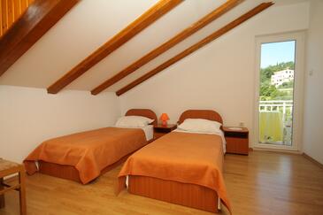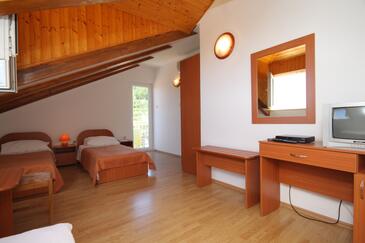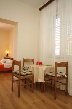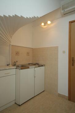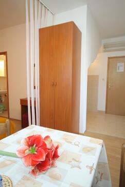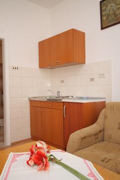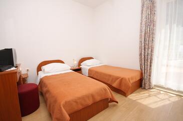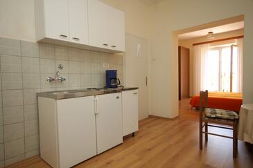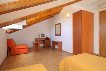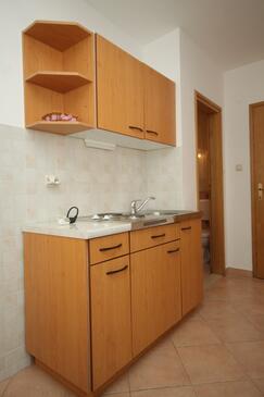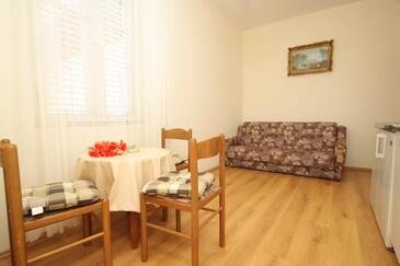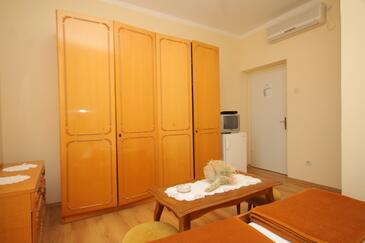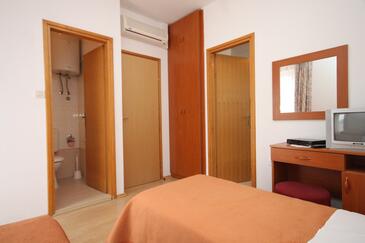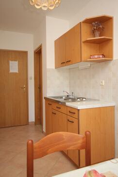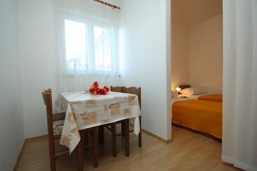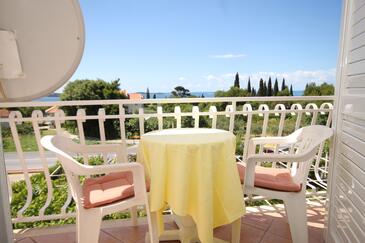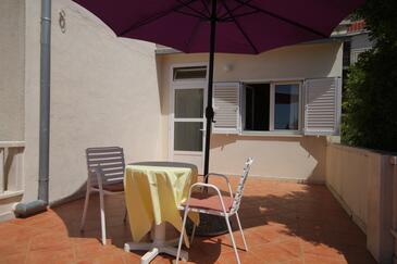 Ferienwohnung bietet Platz für 4 Gäste. Die Betten sind in Schlafzimmern, die es 2 gibt, innerhalb einer Gesamtfläche von 37m2, angeordnet. Die Gäste haben eine eigene Terrasse zur Verfügung, auf der sie in warmen Sommernächten genießen können. Das Apartment bietet Meerblick. Es ist erlaubt, Speisen auf dem Gemeinschafts-Grill vorzubereiten.