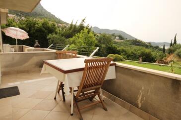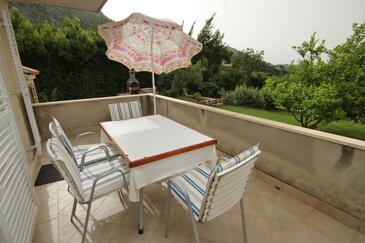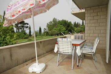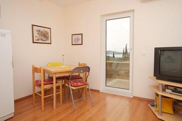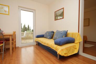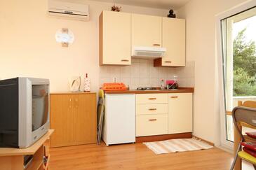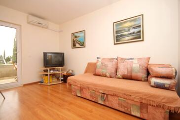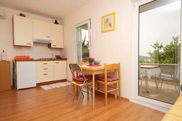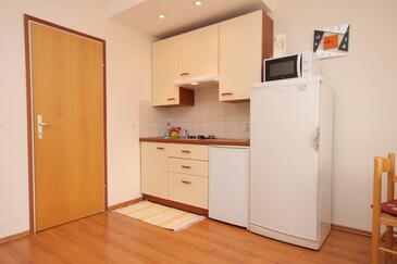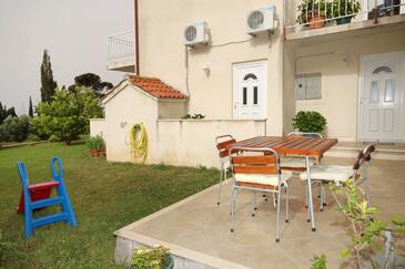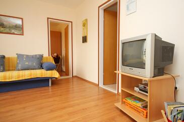 Ferienwohnung bietet Platz für 4 Gäste. Die Betten sind in Schlafzimmern, die es 1 gibt, und in Wohnzimmer, innerhalb einer Gesamtfläche von 31m2, angeordnet. Die Gäste haben eine eigene Terrasse zur Verfügung, auf der sie in warmen Sommernächten genießen können. Das Apartment bietet Meerblick. Es ist erlaubt, Speisen auf dem Gemeinschafts-Grill vorzubereiten.