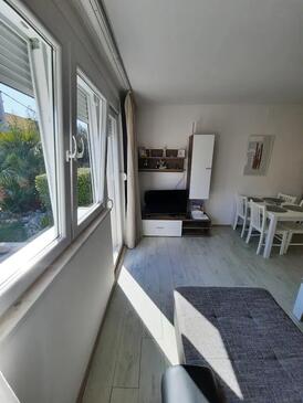 Ferienwohnung bietet Platz für 4 Gäste. Die Betten sind in Schlafzimmern, die es 2 gibt, innerhalb einer Gesamtfläche von 55m2, angeordnet. Die Gäste haben eine eigene Terrasse zur Verfügung, auf der sie in warmen Sommernächten genießen können. Für vollen Genuss und Entspannung gibt es einen privaten Grill für Gäste dieser Unterkunft.
