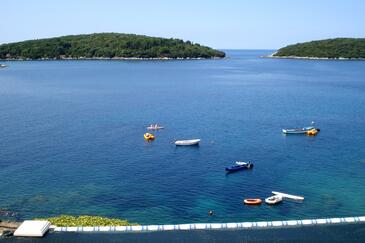 Ferienwohnung bietet Platz für 4 Gäste. Die Betten sind in Schlafzimmern, die es 2 gibt, innerhalb einer Gesamtfläche von 40m2, angeordnet. Die Gäste haben eine eigene Terrasse zur Verfügung, auf der sie in warmen Sommernächten genießen können. Das Apartment bietet Meerblick. Es ist erlaubt, Speisen auf dem Gemeinschafts-Grill vorzubereiten.