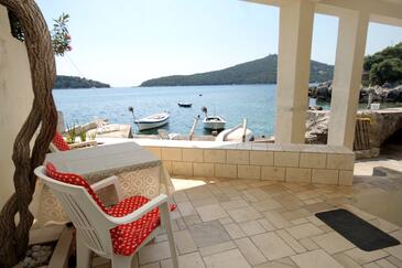 Studio bietet Platz für 3 Gäste. Die Betten sind in Schlafzimmern, die es 1 gibt, und in Esszimmer, innerhalb einer Gesamtfläche von 24m2, angeordnet. Die Gäste haben eine eigene Terrasse zur Verfügung, auf der sie in warmen Sommernächten genießen können. Das Studio-Apartment bietet Meerblick. Es ist erlaubt, Speisen auf dem Gemeinschafts-Grill vorzubereiten.