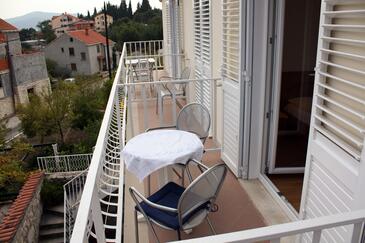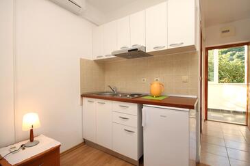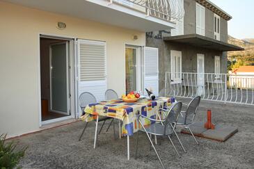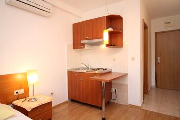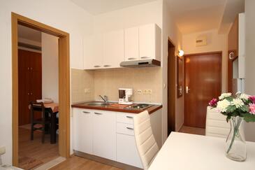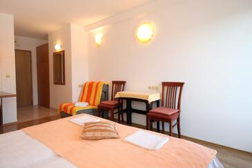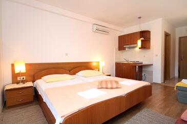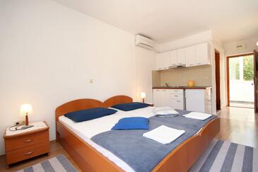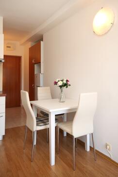 Ferienwohnung bietet Platz für 4 Gäste. Die Betten sind in Schlafzimmern, die es 2 gibt, innerhalb einer Gesamtfläche von 42m2, angeordnet. Die Gäste haben eine eigene Terrasse zur Verfügung, auf der sie in warmen Sommernächten genießen können. Das Apartment bietet Meerblick. Es ist erlaubt, Speisen auf dem Gemeinschafts-Grill vorzubereiten. In der Unterkunftseinheit besteht die Möglichkeit des Mitbringens von Haustieren gegen Aufpreis.