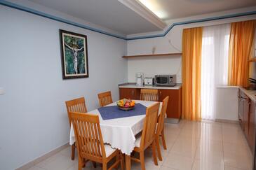 Ferienwohnung bietet Platz für 4 Gäste. Die Betten sind in Schlafzimmern, die es 2 gibt, innerhalb einer Gesamtfläche von 75m2, angeordnet. Die Gäste haben eine eigene Terrasse zur Verfügung, auf der sie in warmen Sommernächten genießen können. Das Apartment bietet Meerblick. Es ist erlaubt, Speisen auf dem Gemeinschafts-Grill vorzubereiten. In der Unterkunftseinheit besteht die Möglichkeit des Mitbringens von Haustieren gegen Aufpreis.