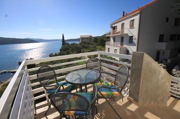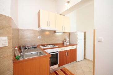 Ferienwohnung bietet Platz für 4 Gäste. Die Betten sind in Schlafzimmern, die es 2 gibt, innerhalb einer Gesamtfläche von 51m2, angeordnet. Die Gäste haben einen eigenen Balkon zur Verfügung, auf der sie in warmen Sommernächten genießen können. Das Apartment bietet Meerblick. Es ist erlaubt, Speisen auf dem Gemeinschafts-Grill vorzubereiten.