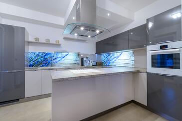 Haus bietet Platz für 10 Gäste. Die Betten sind in Schlafzimmern, die es 4 gibt, und in Wohnzimmer, innerhalb einer Gesamtfläche von 279m2, angeordnet. Die Gäste haben eine eigene Terrasse zur Verfügung, auf der sie in warmen Sommernächten genießen können. Das Haus bietet Meerblick. Für vollen Genuss und Entspannung gibt es einen privaten Grill für Gäste dieser Unterkunft. Während ihres Aufenthalts können sich Gäste im privaten Schwimmbad entspannen.