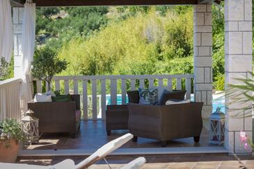 Haus bietet Platz für 10 Gäste. Die Betten sind in Schlafzimmern, die es 4 gibt, und in Wohnzimmer, innerhalb einer Gesamtfläche von 279m2, angeordnet. Die Gäste haben eine eigene Terrasse zur Verfügung, auf der sie in warmen Sommernächten genießen können. Das Haus bietet Meerblick. Für vollen Genuss und Entspannung gibt es einen privaten Grill für Gäste dieser Unterkunft. Während ihres Aufenthalts können sich Gäste im privaten Schwimmbad entspannen.