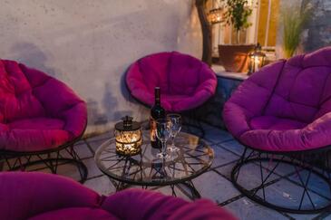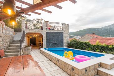 Ferienwohnung bietet Platz für 7 Gäste. Die Betten sind in Schlafzimmern, die es 3 gibt, innerhalb einer Gesamtfläche von 94m2, angeordnet. Die Gäste haben eine eigene Terrasse zur Verfügung, auf der sie in warmen Sommernächten genießen können. Das Apartment bietet Meerblick. Für vollen Genuss und Entspannung gibt es einen privaten Grill für Gäste dieser Unterkunft. Während ihres Aufenthalts können sich Gäste im privaten Schwimmbad entspannen. In der Unterkunftseinheit besteht die Möglichkeit des Mitbringens von Haustieren, und die Dienstleistung ist im Preis der Unterkunft enthalten.