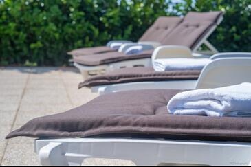 Ferienwohnung bietet Platz für 10 Gäste. Die Betten sind in Schlafzimmern, die es 5 gibt, innerhalb einer Gesamtfläche von 155m2, angeordnet. Die Gäste haben eine eigene Terrasse zur Verfügung, auf der sie in warmen Sommernächten genießen können. Das Apartment bietet Meerblick. Für vollen Genuss und Entspannung gibt es einen privaten Grill für Gäste dieser Unterkunft. Während ihres Aufenthalts können Gäste das gemeinsam zur Nutzung stehende Schwimmbad benutzen. Räume der gebuchten Unterkunftseinheit werden nicht in eine Ganze verbunden.