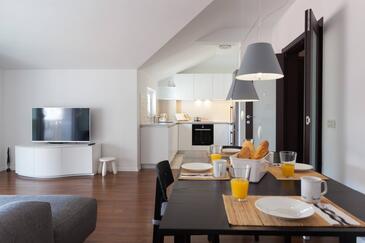Ferienwohnung bietet Platz für 4 Gäste. Die Betten sind in Schlafzimmern, die es 2 gibt, innerhalb einer Gesamtfläche von 68m2, angeordnet. Die Gäste haben eine eigene Terrasse zur Verfügung, auf der sie in warmen Sommernächten genießen können. Das Apartment bietet Meerblick.