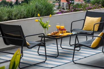 Haus bietet Platz für 6 Gäste. Die Betten sind in Schlafzimmern, die es 3 gibt, innerhalb einer Gesamtfläche von 99m2, angeordnet. Die Gäste haben eine eigene Terrasse zur Verfügung, auf der sie in warmen Sommernächten genießen können. Das Haus bietet Meerblick. Während ihres Aufenthalts können sich Gäste im privaten Schwimmbad entspannen.