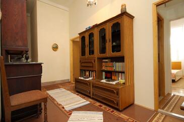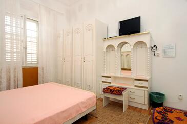 Ferienwohnung bietet Platz für 4 Gäste. Die Betten sind in Schlafzimmern, die es 2 gibt, innerhalb einer Gesamtfläche von 48m2, angeordnet. Die Gäste haben eine eigene Terrasse zur Verfügung, auf der sie in warmen Sommernächten genießen können. Das Apartment bietet Meerblick. Es ist erlaubt, Speisen auf dem Gemeinschafts-Grill vorzubereiten.