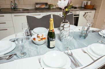 Haus bietet Platz für 6 Gäste. Die Betten sind in Schlafzimmern, die es 3 gibt, innerhalb einer Gesamtfläche von 81m2, angeordnet. Die Gäste haben eine eigene Terrasse zur Verfügung, auf der sie in warmen Sommernächten genießen können. Das Haus bietet Meerblick. Für vollen Genuss und Entspannung gibt es einen privaten Grill für Gäste dieser Unterkunft. In der Unterkunftseinheit besteht die Möglichkeit des Mitbringens von Haustieren gegen Aufpreis.