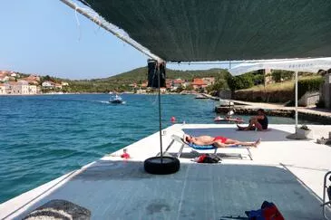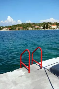 Ferienwohnung bietet Platz für 6 Gäste. Die Betten sind in Schlafzimmern, die es 2 gibt, innerhalb einer Gesamtfläche von 50m2, angeordnet. Die Gäste haben eine eigene Terrasse zur Verfügung, auf der sie in warmen Sommernächten genießen können. Das Apartment bietet Meerblick. Es ist erlaubt, Speisen auf dem Gemeinschafts-Grill vorzubereiten. In der Unterkunftseinheit besteht die Möglichkeit des Mitbringens von Haustieren gegen Aufpreis.