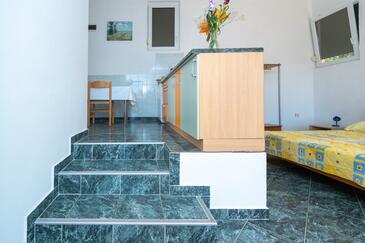 Studio bietet Platz für 2 Gäste. Die Betten sind in Schlafzimmern, die es 1 gibt, innerhalb einer Gesamtfläche von 24m2, angeordnet. Die Gäste haben eine eigene Terrasse zur Verfügung, auf der sie in warmen Sommernächten genießen können. Das Studio-Apartment bietet Meerblick. Es ist erlaubt, Speisen auf dem Gemeinschafts-Grill vorzubereiten. In der Unterkunftseinheit besteht die Möglichkeit des Mitbringens von Haustieren gegen Aufpreis.