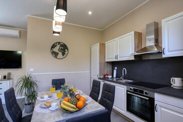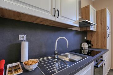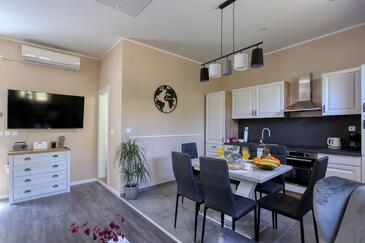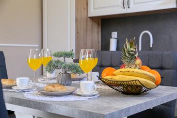 Haus bietet Platz für 4 Gäste. Die Betten sind in Schlafzimmern, die es 2 gibt, innerhalb einer Gesamtfläche von 65m2, angeordnet. Die Gäste haben eine eigene Terrasse zur Verfügung, auf der sie in warmen Sommernächten genießen können. Für vollen Genuss und Entspannung gibt es einen privaten Grill für Gäste dieser Unterkunft. Räume der gebuchten Unterkunftseinheit werden nicht in eine Ganze verbunden.