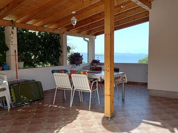 Ferienwohnung bietet Platz für 4 Gäste. Die Betten sind in Schlafzimmern, die es 2 gibt, innerhalb einer Gesamtfläche von 60m2, angeordnet. Die Gäste haben eine eigene Terrasse zur Verfügung, auf der sie in warmen Sommernächten genießen können. Das Apartment bietet Meerblick. Es ist erlaubt, Speisen auf dem Gemeinschafts-Grill vorzubereiten.