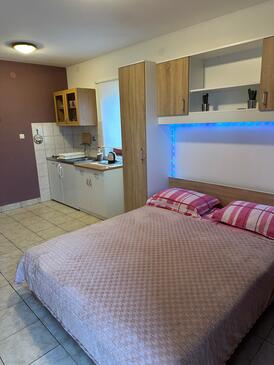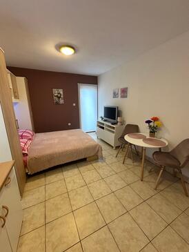 Ferienwohnung bietet Platz für 5 Gäste. Die Betten sind in Schlafzimmern, die es 2 gibt, und in Esszimmer, innerhalb einer Gesamtfläche von 38m2, angeordnet. Die Gäste haben eine eigene Terrasse zur Verfügung, auf der sie in warmen Sommernächten genießen können. Das Apartment bietet Meerblick. Es ist erlaubt, Speisen auf dem Gemeinschafts-Grill vorzubereiten. In der Unterkunftseinheit besteht die Möglichkeit des Mitbringens von Haustieren gegen Aufpreis.
