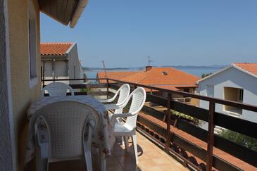Ferienwohnung bietet Platz für 5 Gäste. Die Betten sind in Schlafzimmern, die es 2 gibt, innerhalb einer Gesamtfläche von 44m2, angeordnet. Die Gäste haben einen eigenen Balkon zur Verfügung, auf der sie in warmen Sommernächten genießen können. Das Apartment bietet Meerblick. Es ist erlaubt, Speisen auf dem Gemeinschafts-Grill vorzubereiten.