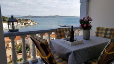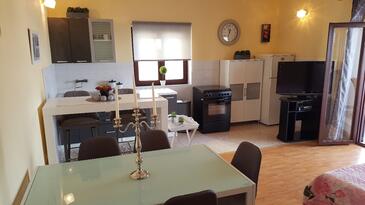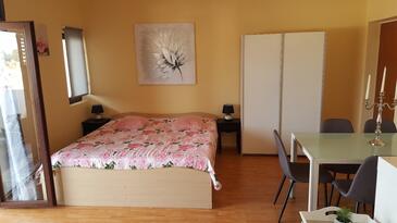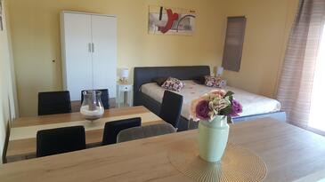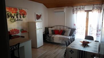 Ferienwohnung bietet Platz für 3 Gäste. Die Betten sind in Schlafzimmern, die es 1 gibt, und in Esszimmer, innerhalb einer Gesamtfläche von 38m2, angeordnet. Die Gäste haben eine eigene Terrasse zur Verfügung, auf der sie in warmen Sommernächten genießen können. Das Apartment bietet Meerblick. Es ist erlaubt, Speisen auf dem Gemeinschafts-Grill vorzubereiten.
