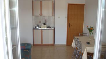 Ferienwohnung bietet Platz für 4 Gäste. Die Betten sind in Schlafzimmern, die es 1 gibt, und in Esszimmer, innerhalb einer Gesamtfläche von 36m2, angeordnet. Die Gäste haben eine eigene Terrasse zur Verfügung, auf der sie in warmen Sommernächten genießen können. Das Apartment bietet Meerblick. Es ist erlaubt, Speisen auf dem Gemeinschafts-Grill vorzubereiten.