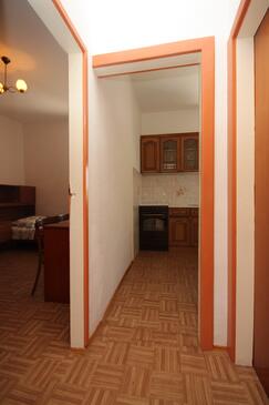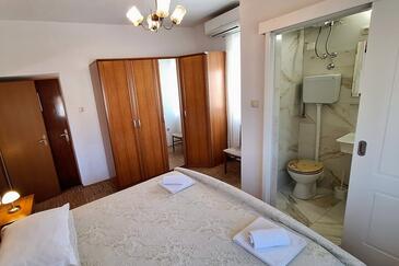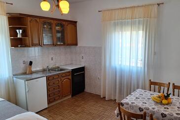Ferienwohnung bietet Platz für 4 Gäste. Die Betten sind in Schlafzimmern, die es 1 gibt, und in Esszimmer, innerhalb einer Gesamtfläche von 32m2, angeordnet. Die Gäste haben eine eigene Terrasse zur Verfügung, auf der sie in warmen Sommernächten genießen können. Das Apartment bietet Meerblick. Es ist erlaubt, Speisen auf dem Gemeinschafts-Grill vorzubereiten.