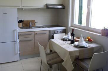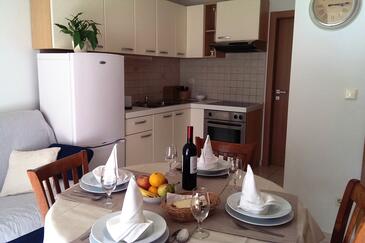 Ferienwohnung bietet Platz für 4 Gäste. Die Betten sind in Schlafzimmern, die es 2 gibt, innerhalb einer Gesamtfläche von 43m2, angeordnet. Die Gäste haben eine eigene Terrasse zur Verfügung, auf der sie in warmen Sommernächten genießen können. Das Apartment bietet Meerblick. Es ist erlaubt, Speisen auf dem Gemeinschafts-Grill vorzubereiten. In der Unterkunftseinheit besteht die Möglichkeit des Mitbringens von Haustieren gegen Aufpreis.