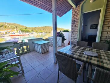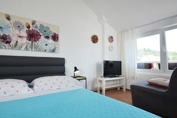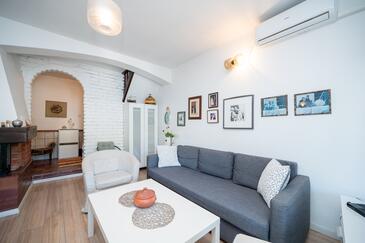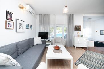 Ferienwohnung bietet Platz für 5 Gäste. Die Betten sind in Schlafzimmern, die es 2 gibt, und in Wohnzimmer, innerhalb einer Gesamtfläche von 70m2, angeordnet. Die Gäste haben eine eigene Terrasse zur Verfügung, auf der sie in warmen Sommernächten genießen können. Das Apartment bietet Meerblick. Es ist erlaubt, Speisen auf dem Gemeinschafts-Grill vorzubereiten. In der Unterkunftseinheit besteht die Möglichkeit des Mitbringens von Haustieren gegen Aufpreis.