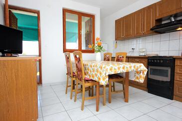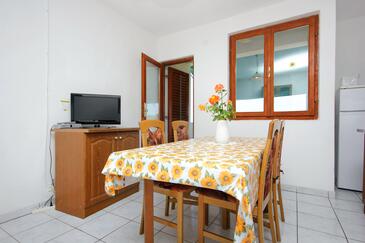 Ferienwohnung bietet Platz für 5 Gäste. Die Betten sind in Schlafzimmern, die es 2 gibt, und in Wohnzimmer, innerhalb einer Gesamtfläche von 42m2, angeordnet. Die Gäste haben eine eigene Terrasse zur Verfügung, auf der sie in warmen Sommernächten genießen können. Das Apartment bietet Meerblick. Es ist erlaubt, Speisen auf dem Gemeinschafts-Grill vorzubereiten. In der Unterkunftseinheit besteht die Möglichkeit des Mitbringens von Haustieren gegen Aufpreis.