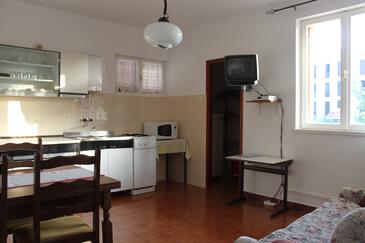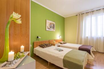 Ferienwohnung bietet Platz für 4 Gäste. Die Betten sind in Schlafzimmern, die es 2 gibt, innerhalb einer Gesamtfläche von 56m2, angeordnet. Die Gäste haben eine eigene Terrasse zur Verfügung, auf der sie in warmen Sommernächten genießen können. Es ist erlaubt, Speisen auf dem Gemeinschafts-Grill vorzubereiten. In der Unterkunftseinheit besteht die Möglichkeit des Mitbringens von Haustieren gegen Aufpreis.