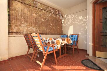 Ferienwohnung bietet Platz für 4 Gäste. Die Betten sind in Schlafzimmern, die es 2 gibt, innerhalb einer Gesamtfläche von 42m2, angeordnet. Die Gäste haben eine eigene Terrasse zur Verfügung, auf der sie in warmen Sommernächten genießen können. Es ist erlaubt, Speisen auf dem Gemeinschafts-Grill vorzubereiten.