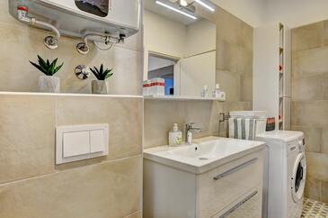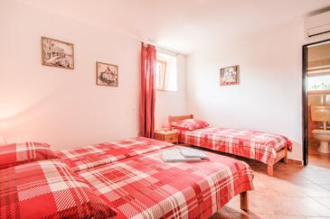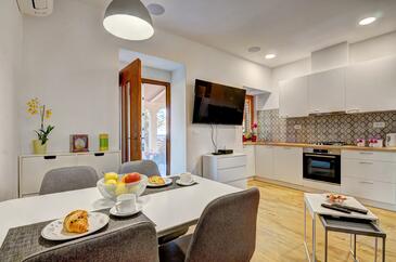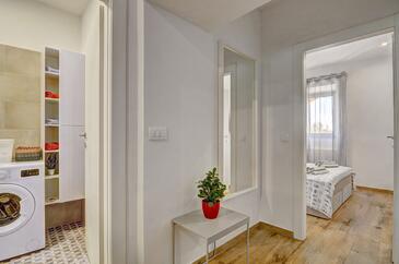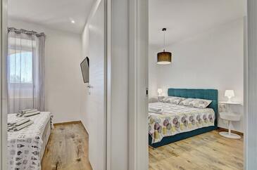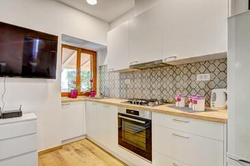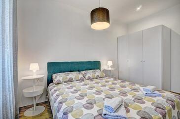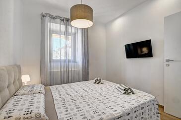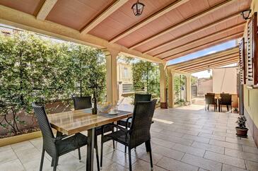 Ferienwohnung bietet Platz für 5 Gäste. Die Betten sind in Schlafzimmern, die es 2 gibt, und in Wohnzimmer, innerhalb einer Gesamtfläche von 45m2, angeordnet. Die Gäste haben eine eigene Terrasse zur Verfügung, auf der sie in warmen Sommernächten genießen können. Es ist erlaubt, Speisen auf dem Gemeinschafts-Grill vorzubereiten.