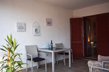 Ferienwohnung bietet Platz für 4 Gäste. Die Betten sind in Schlafzimmern, die es 2 gibt, innerhalb einer Gesamtfläche von 48m2, angeordnet. Die Gäste haben eine eigene Terrasse zur Verfügung, auf der sie in warmen Sommernächten genießen können. Es ist erlaubt, Speisen auf dem Gemeinschafts-Grill vorzubereiten. In der Unterkunftseinheit besteht die Möglichkeit des Mitbringens von Haustieren gegen Aufpreis.