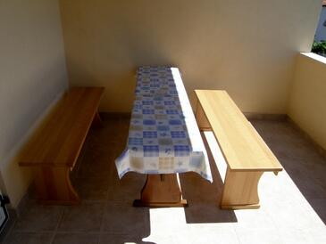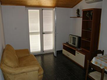 Ferienwohnung bietet Platz für 6 Gäste. Die Betten sind in Schlafzimmern, die es 2 gibt, und in Wohnzimmer, innerhalb einer Gesamtfläche von 64m2, angeordnet. Die Gäste haben eine eigene Terrasse zur Verfügung, auf der sie in warmen Sommernächten genießen können. Das Apartment bietet Meerblick. Es ist erlaubt, Speisen auf dem Gemeinschafts-Grill vorzubereiten. In der Unterkunftseinheit besteht die Möglichkeit des Mitbringens von Haustieren gegen Aufpreis.