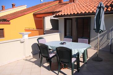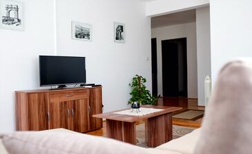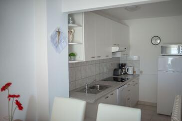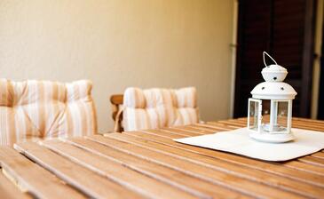 Ferienwohnung bietet Platz für 5 Gäste. Die Betten sind in Schlafzimmern, die es 2 gibt, und in Wohnzimmer, innerhalb einer Gesamtfläche von 58m2, angeordnet. Die Gäste haben eine eigene Terrasse zur Verfügung, auf der sie in warmen Sommernächten genießen können. Das Apartment bietet Meerblick. Es ist erlaubt, Speisen auf dem Gemeinschafts-Grill vorzubereiten.