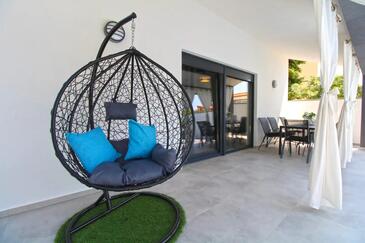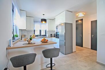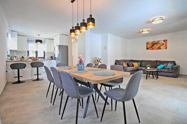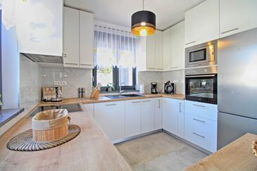 Haus bietet Platz für 8 Gäste. Die Betten sind in Schlafzimmern, die es 3 gibt, und in Wohnzimmer, innerhalb einer Gesamtfläche von 112m2, angeordnet. Die Gäste haben eine eigene Terrasse zur Verfügung, auf der sie in warmen Sommernächten genießen können. Für vollen Genuss und Entspannung gibt es einen privaten Grill für Gäste dieser Unterkunft. Während ihres Aufenthalts können sich Gäste im privaten Schwimmbad entspannen. In der gebuchten Unterkunftseinheit zahlt man am Ort ein Depositum ( der Preis ist an der Internetseite angeführt ).