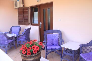 Ferienwohnung bietet Platz für 6 Gäste. Die Betten sind in Schlafzimmern, die es 2 gibt, und in Wohnzimmer, innerhalb einer Gesamtfläche von 43m2, angeordnet. Die Gäste haben eine eigene Terrasse zur Verfügung, auf der sie in warmen Sommernächten genießen können. Es ist erlaubt, Speisen auf dem Gemeinschafts-Grill vorzubereiten. In der Unterkunftseinheit besteht die Möglichkeit des Mitbringens von Haustieren gegen Aufpreis.