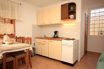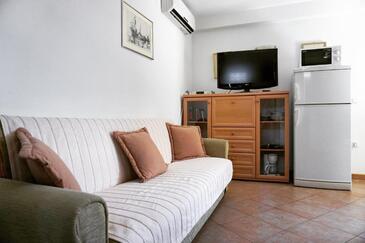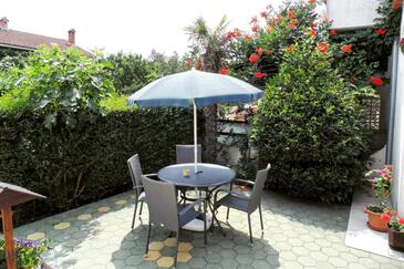 Ferienwohnung bietet Platz für 5 Gäste. Die Betten sind in Schlafzimmern, die es 2 gibt, und in Wohnzimmer, innerhalb einer Gesamtfläche von 50m2, angeordnet. Die Gäste haben eine eigene Terrasse zur Verfügung, auf der sie in warmen Sommernächten genießen können. Es ist erlaubt, Speisen auf dem Gemeinschafts-Grill vorzubereiten.