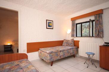 Ferienwohnung bietet Platz für 3 Gäste. Die Betten sind in Schlafzimmern, die es 1 gibt, und in Wohnzimmer, innerhalb einer Gesamtfläche von 39m2, angeordnet. Die Gäste haben eine eigene Terrasse zur Verfügung, auf der sie in warmen Sommernächten genießen können. Für vollen Genuss und Entspannung gibt es einen privaten Grill für Gäste dieser Unterkunft. In der Unterkunftseinheit besteht die Möglichkeit des Mitbringens von Haustieren gegen Aufpreis. Unterkunftseinheit hat Räume, die von dem Rest der Einheit abgetrennt werden.