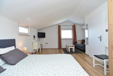 Ferienwohnung bietet Platz für 6 Gäste. Die Betten sind in Schlafzimmern, die es 2 gibt, und in Wohnzimmer, innerhalb einer Gesamtfläche von 72m2, angeordnet. Die Gäste haben einen eigenen Balkon zur Verfügung, auf der sie in warmen Sommernächten genießen können. Das Apartment bietet Meerblick. Es ist erlaubt, Speisen auf dem Gemeinschafts-Grill vorzubereiten. Während ihres Aufenthalts können Gäste das gemeinsam zur Nutzung stehende Schwimmbad benutzen.