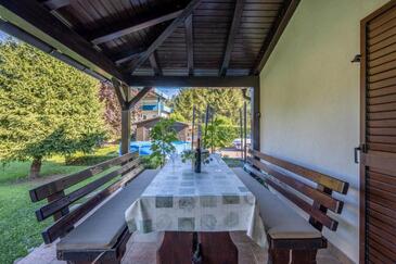 Haus bietet Platz für 8 Gäste. Die Betten sind in Schlafzimmern, die es 3 gibt, und in Wohnzimmer, innerhalb einer Gesamtfläche von 72m2, angeordnet. Die Gäste haben eine eigene Terrasse zur Verfügung, auf der sie in warmen Sommernächten genießen können. Für vollen Genuss und Entspannung gibt es einen privaten Grill für Gäste dieser Unterkunft. Während ihres Aufenthalts können sich Gäste im privaten Schwimmbad entspannen. In der Unterkunftseinheit besteht die Möglichkeit des Mitbringens von Haustieren, und die Dienstleistung ist im Preis der Unterkunft enthalten.