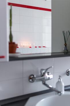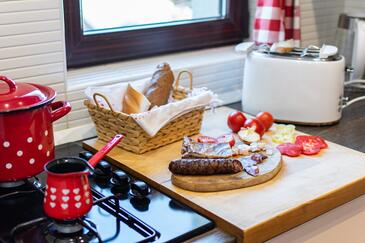Ferienwohnung bietet Platz für 6 Gäste. Die Betten sind in Schlafzimmern, die es 2 gibt, innerhalb einer Gesamtfläche von 74m2, angeordnet. Die Gäste haben eine eigene Terrasse zur Verfügung, auf der sie in warmen Sommernächten genießen können.