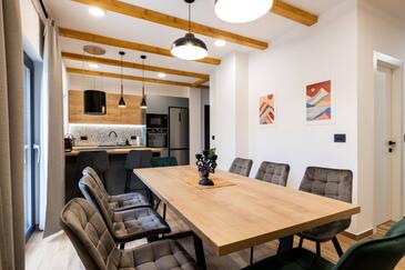 Haus bietet Platz für 7 Gäste. Die Betten sind in Schlafzimmern, die es 3 gibt, und in Wohnzimmer, innerhalb einer Gesamtfläche von 221m2, angeordnet. Die Gäste haben eine eigene Terrasse zur Verfügung, auf der sie in warmen Sommernächten genießen können. Für vollen Genuss und Entspannung gibt es einen privaten Grill für Gäste dieser Unterkunft. In der Unterkunftseinheit besteht die Möglichkeit des Mitbringens von Haustieren, und die Dienstleistung ist im Preis der Unterkunft enthalten.