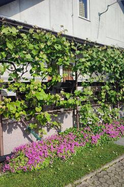 Ferienwohnung bietet Platz für 5 Gäste. Die Betten sind in Schlafzimmern, die es 2 gibt, innerhalb einer Gesamtfläche von 75m2, angeordnet. Die Gäste haben eine eigene Terrasse zur Verfügung, auf der sie in warmen Sommernächten genießen können. Für vollen Genuss und Entspannung gibt es einen privaten Grill für Gäste dieser Unterkunft.