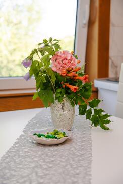 Haus bietet Platz für 4 Gäste. Die Betten sind in Schlafzimmern, die es 2 gibt, und in Wohnzimmer, innerhalb einer Gesamtfläche von 48m2, angeordnet. Die Gäste haben eine eigene Terrasse zur Verfügung, auf der sie in warmen Sommernächten genießen können. Für vollen Genuss und Entspannung gibt es einen privaten Grill für Gäste dieser Unterkunft. Während ihres Aufenthalts können sich Gäste im privaten Schwimmbad entspannen. In der Unterkunftseinheit besteht die Möglichkeit des Mitbringens von Haustieren gegen Aufpreis.