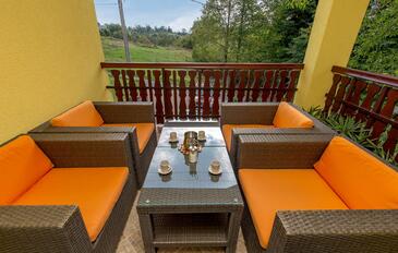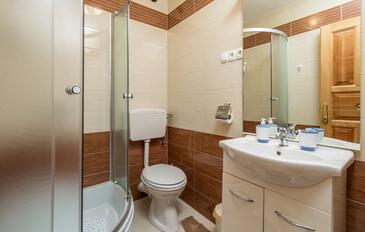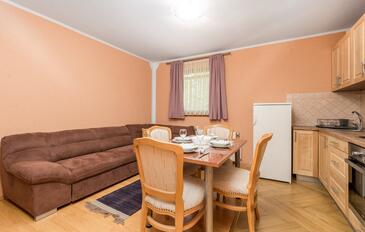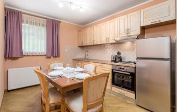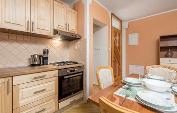 Ferienwohnung bietet Platz für 6 Gäste. Die Betten sind in Schlafzimmern, die es 2 gibt, und in Wohnzimmer, innerhalb einer Gesamtfläche von 46m2, angeordnet. Die Gäste haben eine eigene Terrasse zur Verfügung, auf der sie in warmen Sommernächten genießen können. Es ist erlaubt, Speisen auf dem Gemeinschafts-Grill vorzubereiten.