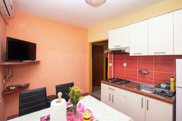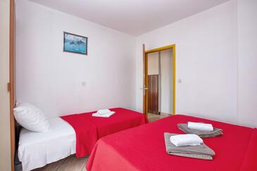 Ferienwohnung bietet Platz für 4 Gäste. Die Betten sind in Schlafzimmern, die es 2 gibt, innerhalb einer Gesamtfläche von 39m2, angeordnet. Die Gäste haben eine eigene Terrasse zur Verfügung, auf der sie in warmen Sommernächten genießen können. Das Apartment bietet Meerblick. Es ist erlaubt, Speisen auf dem Gemeinschafts-Grill vorzubereiten.
