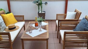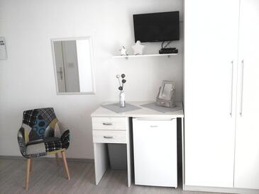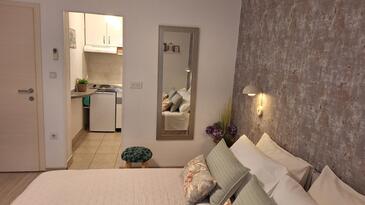 Studio bietet Platz für 2 Gäste. Die Betten sind in Schlafzimmern, die es 1 gibt, innerhalb einer Gesamtfläche von 29m2, angeordnet. Die Gäste haben eine eigene Terrasse zur Verfügung, auf der sie in warmen Sommernächten genießen können.
