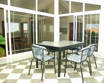 Ferienwohnung bietet Platz für 2 Gäste. Die Betten sind in Schlafzimmern, die es 1 gibt, innerhalb einer Gesamtfläche von 92m2, angeordnet. Die Gäste haben eine eigene Terrasse zur Verfügung, auf der sie in warmen Sommernächten genießen können. Das Apartment bietet Meerblick. Es ist erlaubt, Speisen auf dem Gemeinschafts-Grill vorzubereiten.