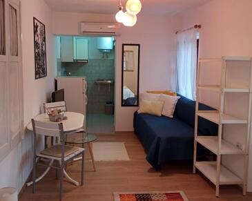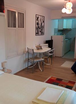 Ferienwohnung bietet Platz für 4 Gäste. Die Betten sind in Schlafzimmern, die es 3 gibt, innerhalb einer Gesamtfläche von 72m2, angeordnet. Die Gäste haben eine eigene Terrasse zur Verfügung, auf der sie in warmen Sommernächten genießen können. Das Apartment bietet Meerblick. Es ist erlaubt, Speisen auf dem Gemeinschafts-Grill vorzubereiten.